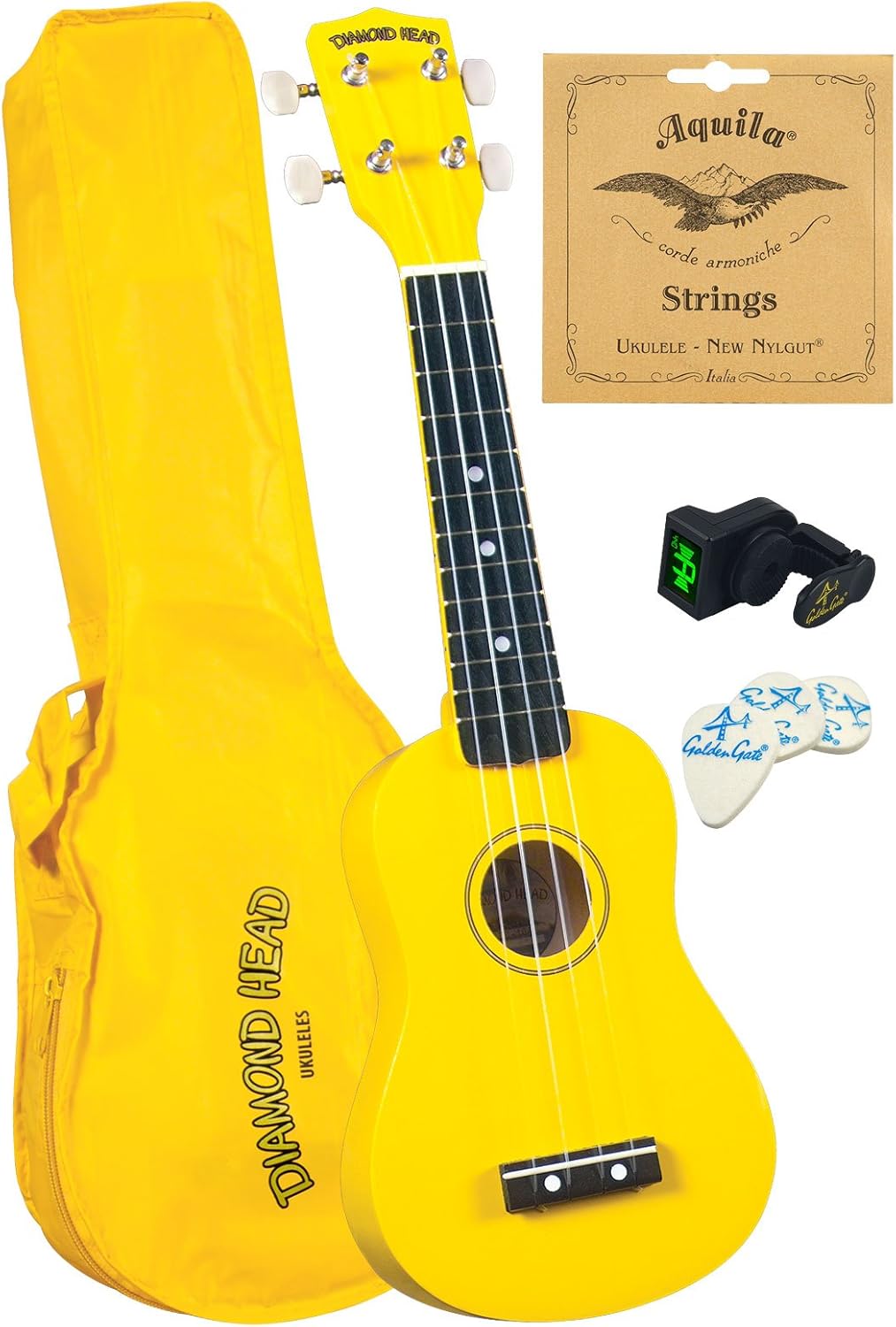 Product Description Diamond head DU-100 uses are available in a rainbow of beautiful colors—kids will love 'em—grownups too! There is no better way to introduce a child to the joys of music than to purchase a brightly colored, easy playing Diamond head UK. The quality and workmanship are first rate and the tone is mellow and pleasing. The guitar style tuning machines make tuning easy for the novice or even the younger players in your home. Thirteen attractive colors to choose from and each one comes with its own durable, color matched gig bag! . From the Manufacturer This soprano ukulelehas has high quality componenets and workmanship and the tone that is mellow and pleasing. The guitar style tuning machines make tuning easy for the novice or even the younger players in your home. Thirteen attractive colors to choose from and each one comes with its own durable, color matched gig bag!