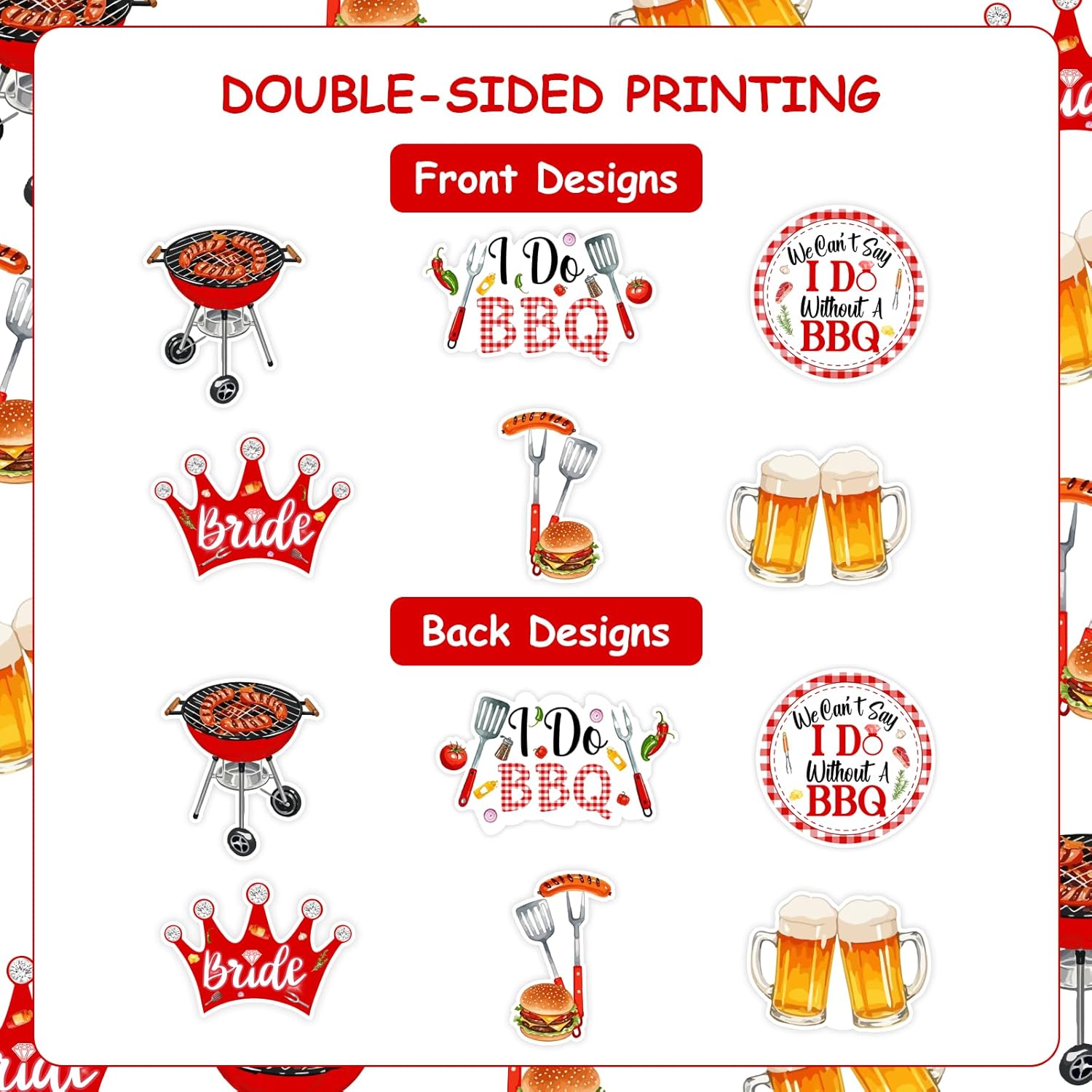 Package includes:24 x BBQ Bachelorette theme table signs - 6 different patterns24 x white sticksadhesive dotsWarm Tips:The vase in the image is for demonstration purposes only; the actual package does not include vase.