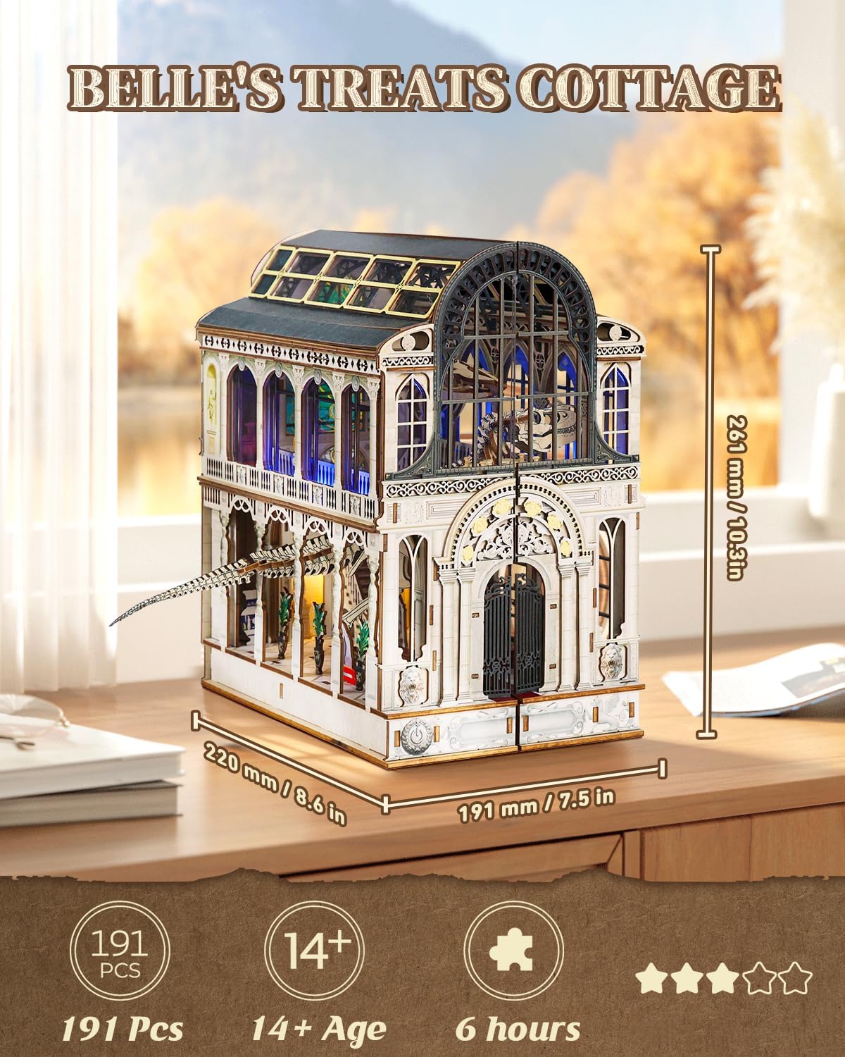 Book Nook: Craft Your Own Mini Dream WorldWhether you’re a total beginner with no experience, an advanced builder seeking a challenge, or an enthusiast who loves mini scene creation—you’ll find the perfect Book Nook for you here, and discover joy that’s uniquely yours!Our products cover a variety of themes: from vintage bookstores and street cafe to floral greenhouses and adventure scenes. Every piece is packed with details—precision-cut 3D wooden puzzles paired with LED lighting that fills the space with cozy ambiance once turned on.Putting it together is more than just a relaxing activity—it’s a way to strengthen bonds, too. Build it with family or friends, leave your worries behind, and savor the joy of creating something together. Once finished, it’s not just a collectible mini work of art, but also a decor piece that elevates your home style. Place it on a bookshelf or desk, and it’ll instantly become the focal point of the room.It’s also a thoughtful gift choice! For special occasions like birthdays, anniversaries, Christmas, Thanksgiving, or Valentine’s Day—give it to family, friends, partners, or art lovers. It conveys the thoughtfulness of handmade creativity, lets the recipient enjoy the fun of DIY, and doubles as a practical, memorable keepsake.Warm TipsBefore assembly, please prepare batteries on your own (usually 3 AAA batteries; refer to the product packaging for specific requirements). Some models also require additional silicone liquid glue.If you have any questions or encounter issues with parts during assembly, feel free to contact us anytime. Our professional team will provide a solution as soon as possible to ensure a hassle-free building experience!