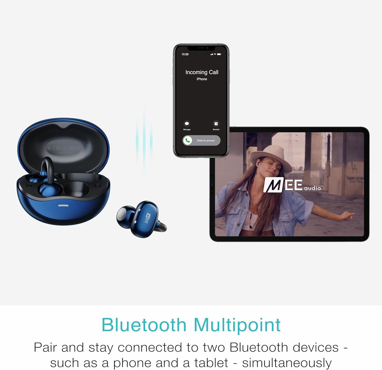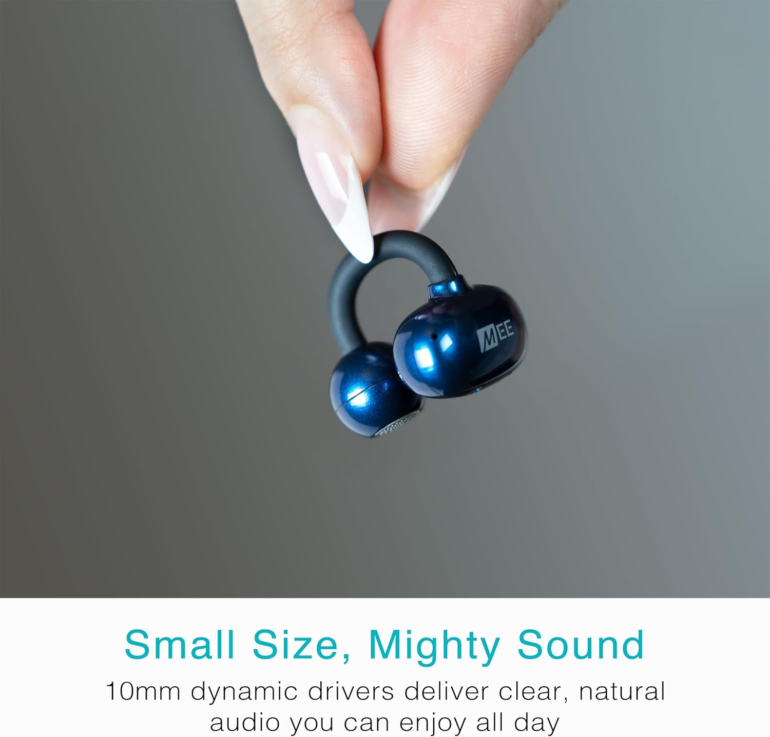 MEE audio Pebbles Air Open Ear True Wireless Earbuds - Bluetooth 5.3 Lightweight Earclip Headphones with Headset Microphone & Call Noise Reduction for Gym/Workouts/Sports and Gaming (Sapphire/Blue)