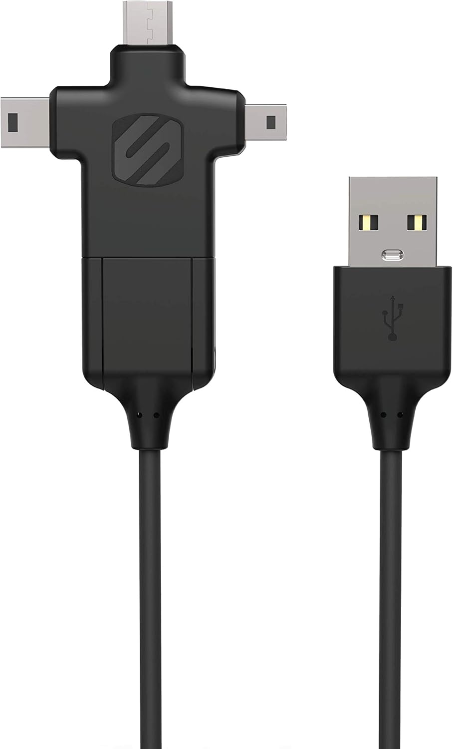 The Scosche CCi4B4PWT StrikeLine 2-in-1 Braided USB-C to USB-C / USB-C to Lightning Charge & Sync Cable is the ultimate charging solution for all your devices with our Designed to meet the needs of the modern tech-savvy individual, this cable is the epitome of convenience and reliability. With a robust design this universal multi charging cable for lightning and USB-C devices allows you to effortlessly power up your cell phone, tablet, and other gadgets without the need for multiple cords cluttering your space.This all-in-one charging cable features fast charging capabilities, ensuring your devices are powered up quickly and efficiently. The durable braided design and aluminum housing provides extra strength and flexibility, resisting tangles and wear over time. Whether you own an iPhone with a USB-C or lightning input or an Android device that uses a type C charging cable, this multi charger cable has got you covered. Perfect for home, office, or travel, it's the only charger cord you'll ever need.